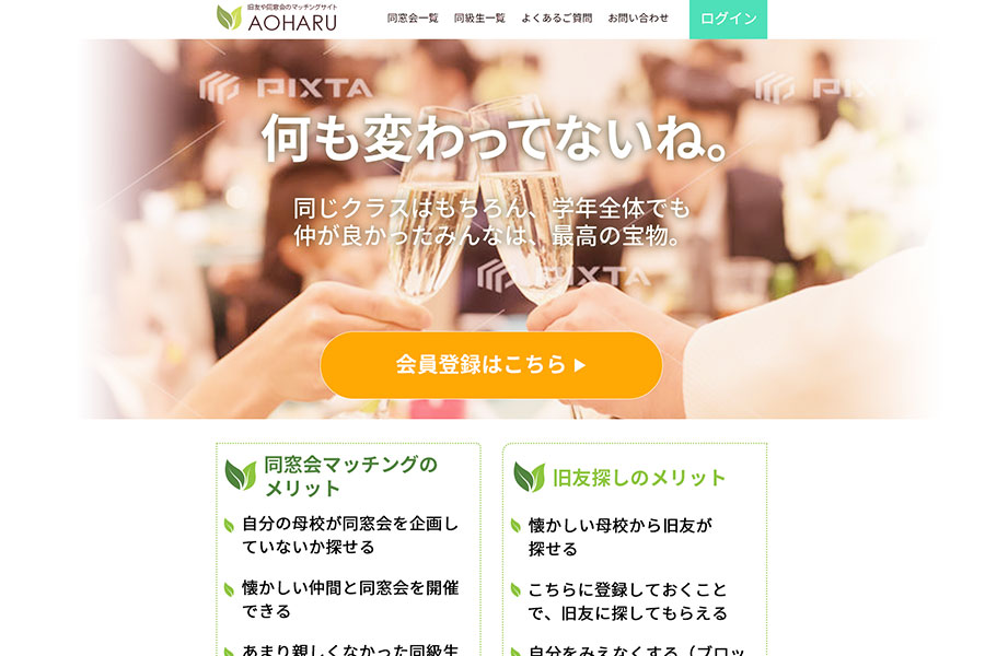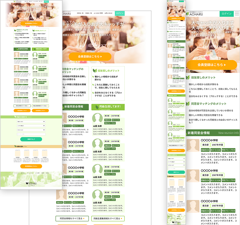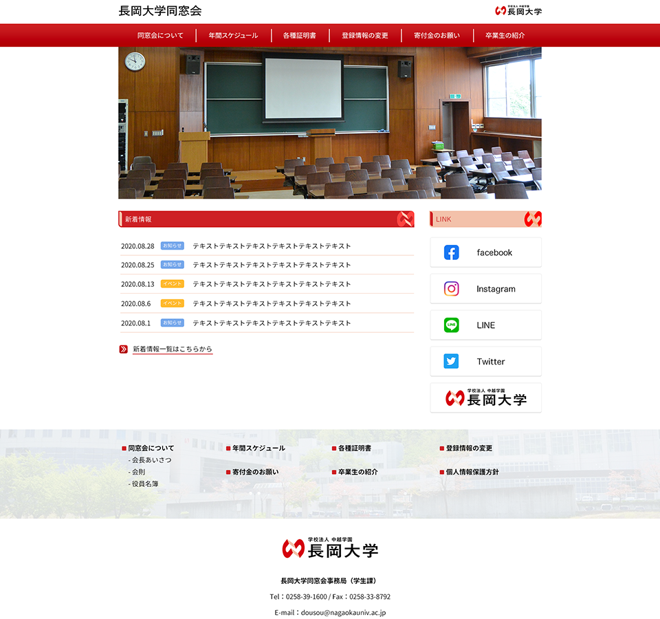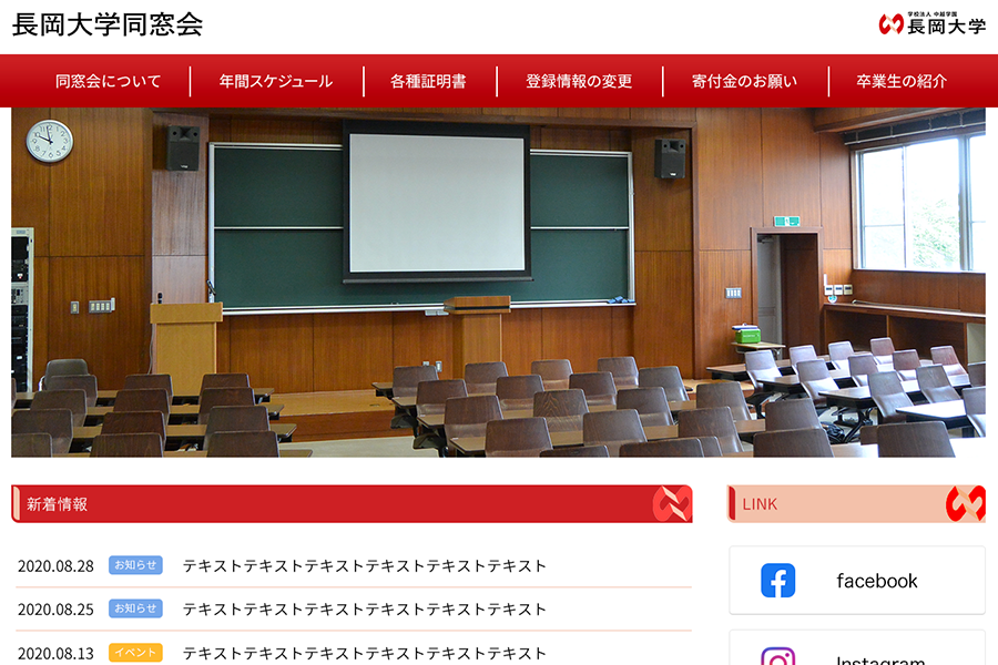 大学の同窓会サイトということでしたので、大学本体を想起させるトーンマナーと、シンプルなレイアウトとデザインで情報を認識しやすくデザインした。 ※デザインのみ納品のため、ローンチ時期は不明。