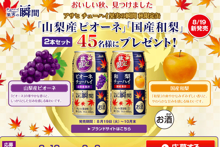 低アルコール飲料カテゴリ、定例キャンペーンページ。効率化を図るためのテンプレートを制作し、現在もそのテンプレートが使用されている。レスポンシブル制作。