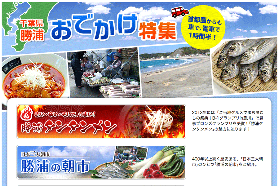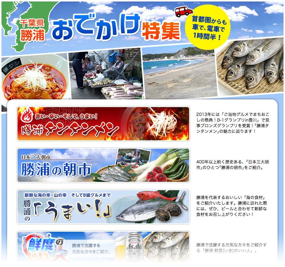 千葉県勝浦市をフィーチャーした、販促ツールの一貫として制作。現地支社の方と取材しながら構成より制作。