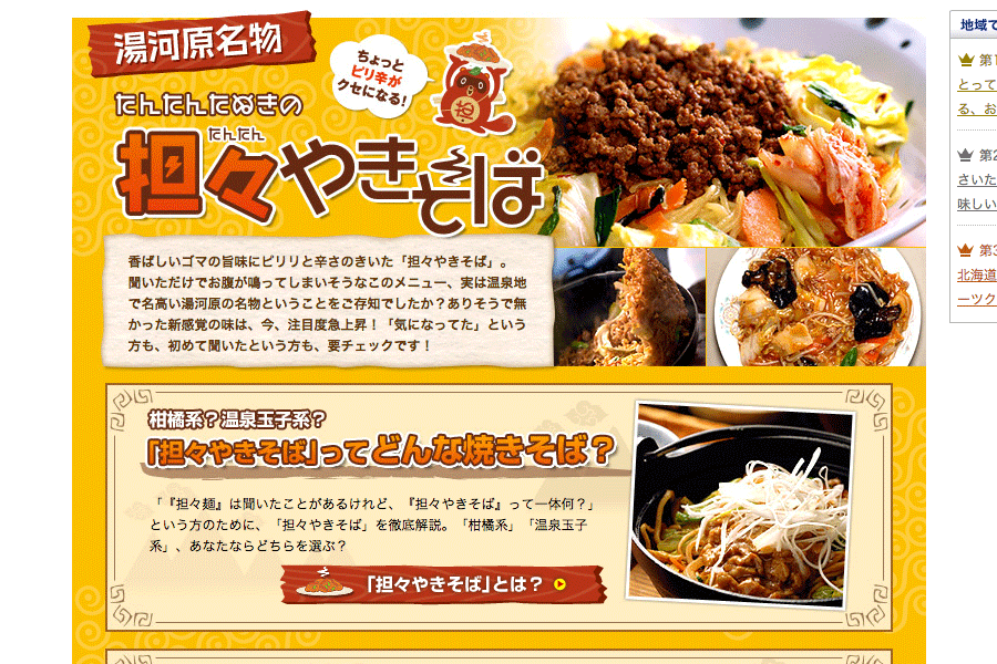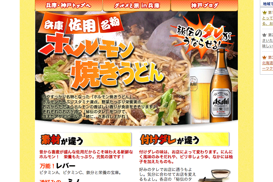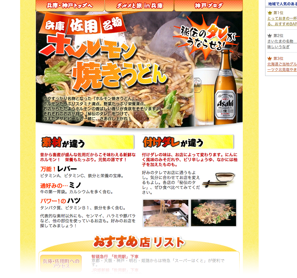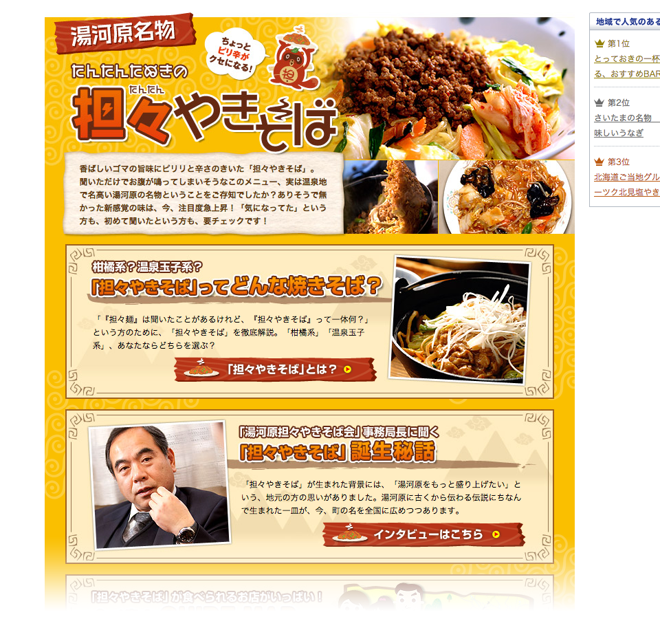 全国的に展開していた、ご当地名物料理を取り上げる特集ページの一つ。B級グルメの認知と盛り上げに貢献。