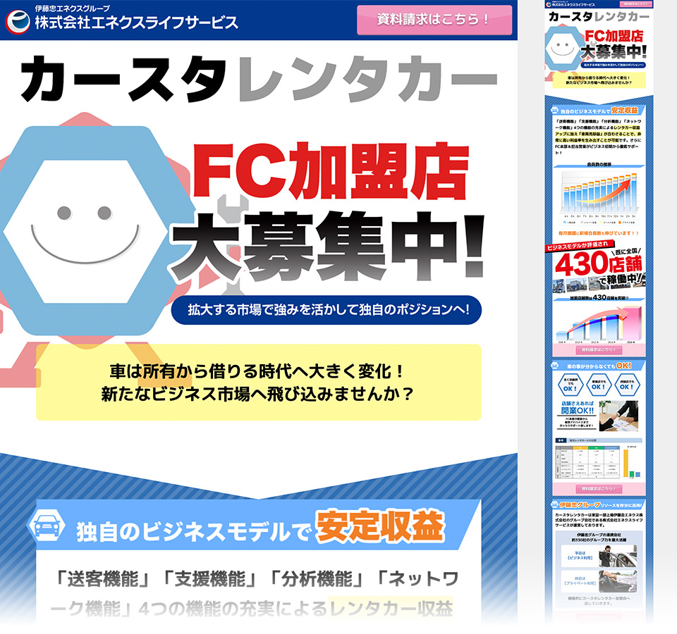 レンタカーサービスの制作。加盟店様向けランディングページとして制作。