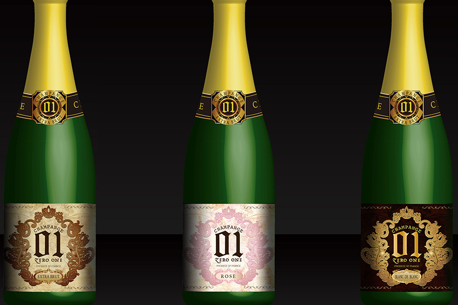 初輸入されるシャンパーニュのエチケットラベルを制作。伝統と歴史を、古い海図で表現。シャンパーニュの華やかさを周囲のオーナメントで飾り立ててデザイン。 ※デザインのみ納品のため、ローンチ時期は不明。