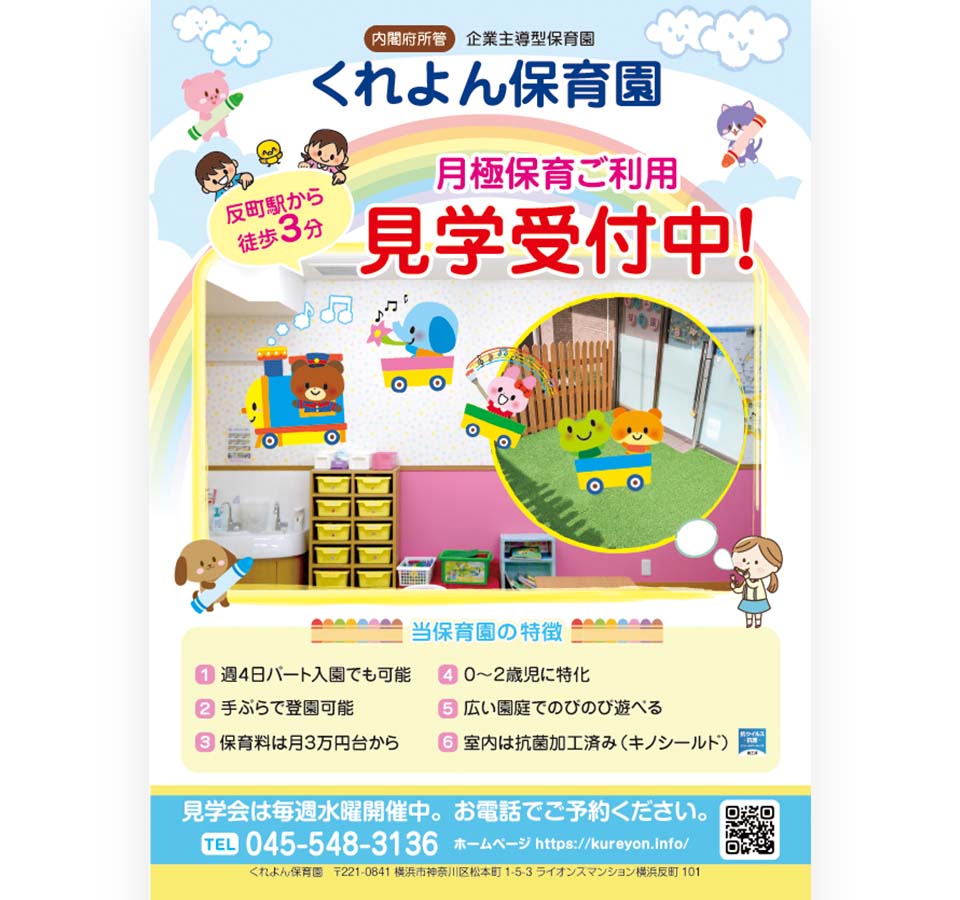 保育園の入園希望者向け施設見学リーフレットのデザイン。デザイン入稿まで担当。