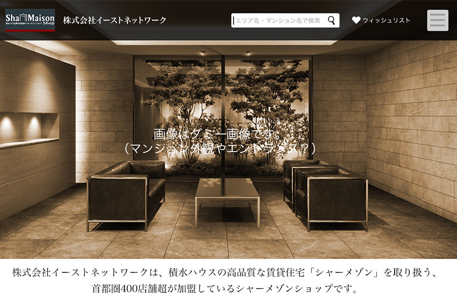 湾岸地域専門不動産企業のPCサイトデザイン。「湾岸・ハイクラス」がコンセプトの不動産なので、高級感を出しつつシンプルで物件がわかりやすいデザインに仕上げた。 ※デザインのみ納品のため、ローンチ時期は不明。