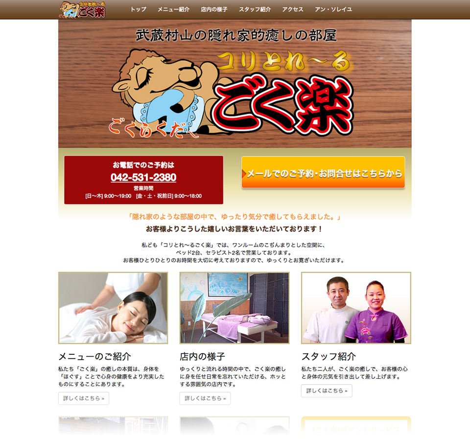 個人経理のリラクゼーションサロンの新規提案。フェースブックなどで補完しきれない情報を提供する目的で、シンプルに構成。レスポンシブルで制作予定。