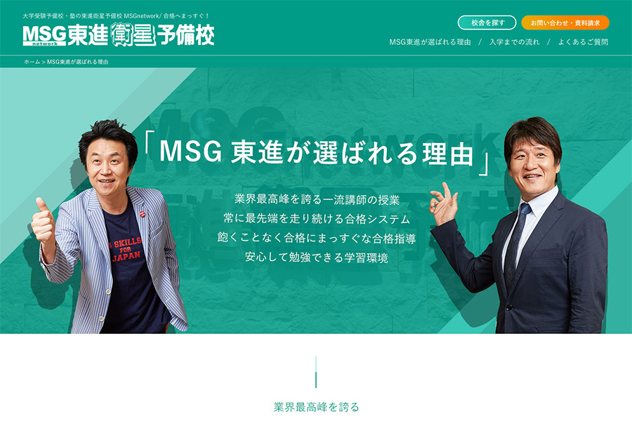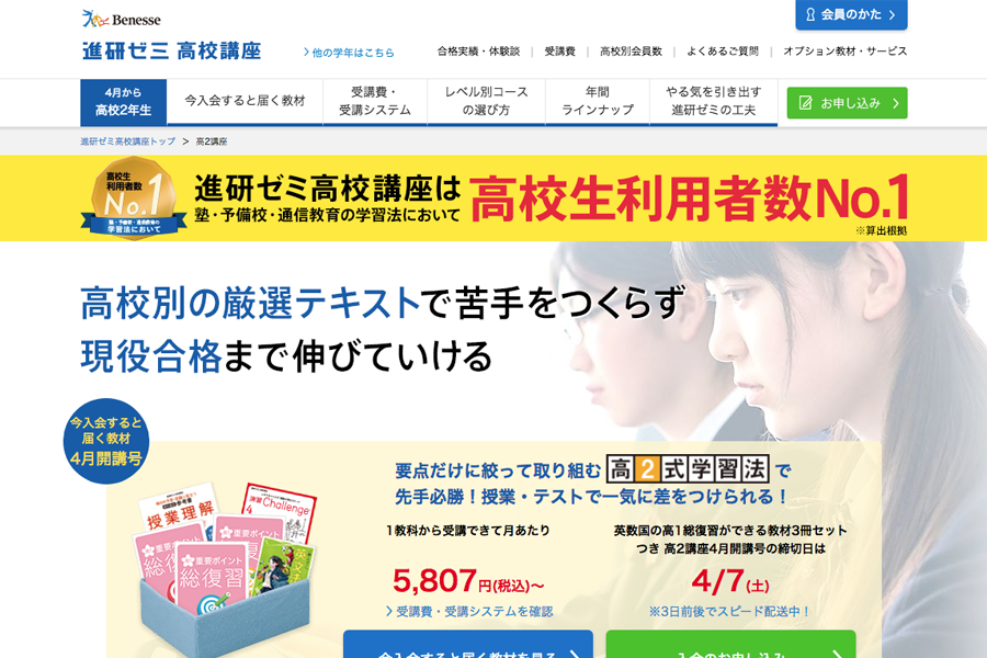 通信教育最大手 進研ゼミ高校講座サイト。LPからサイト運用案件(バナーデザイン・ページデザイン)を担当。シンプルに、教材とその効果を訴求。