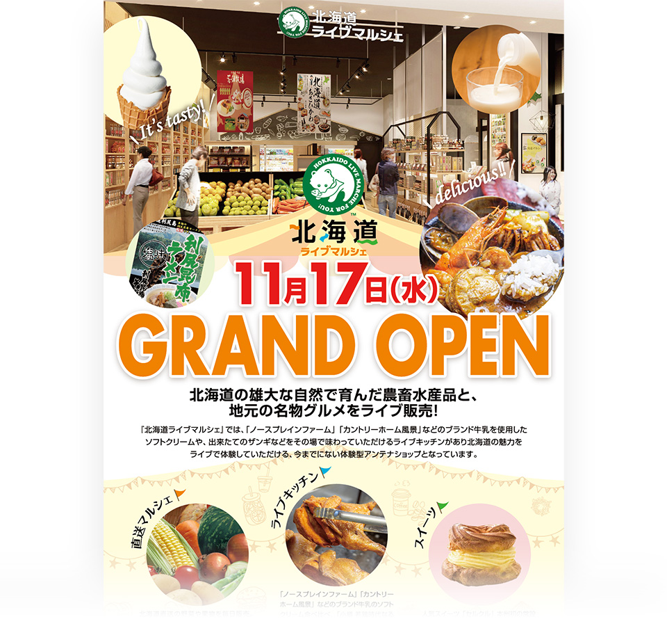 地域活性化事業の一貫である、アンテナショップの開店告知ポスターをデザイン。