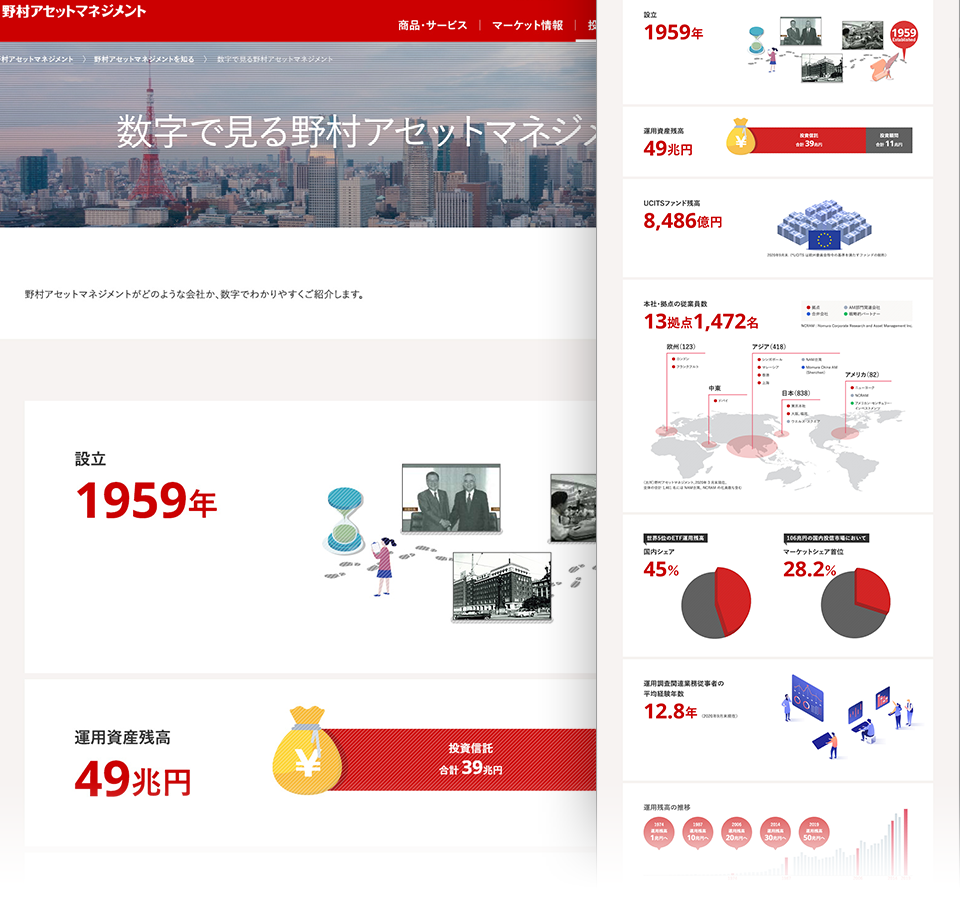 大手証券会社のリニューアルに参画させていただき、ページレイアウトや図表周りを担当。