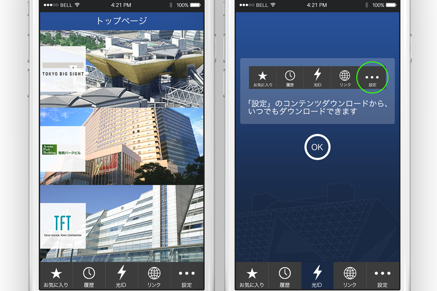 東京ビッグサイトとその周辺施設の案内アプリ。主にインバウンド需要を想定し、アイコンを多用し視覚的に通じやすいUIでデザイン。多言語対応。