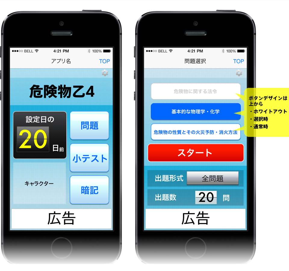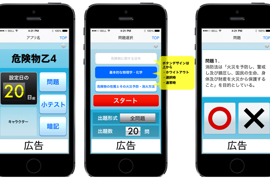 資格取得を目的にした模擬試験アプリのインターフェースをデザイン。