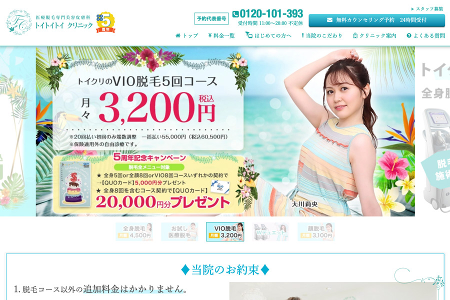 美容クリニックサイトの販促LPデザイン。 ※デザインのみ納品のため、ローンチ時期は不明。